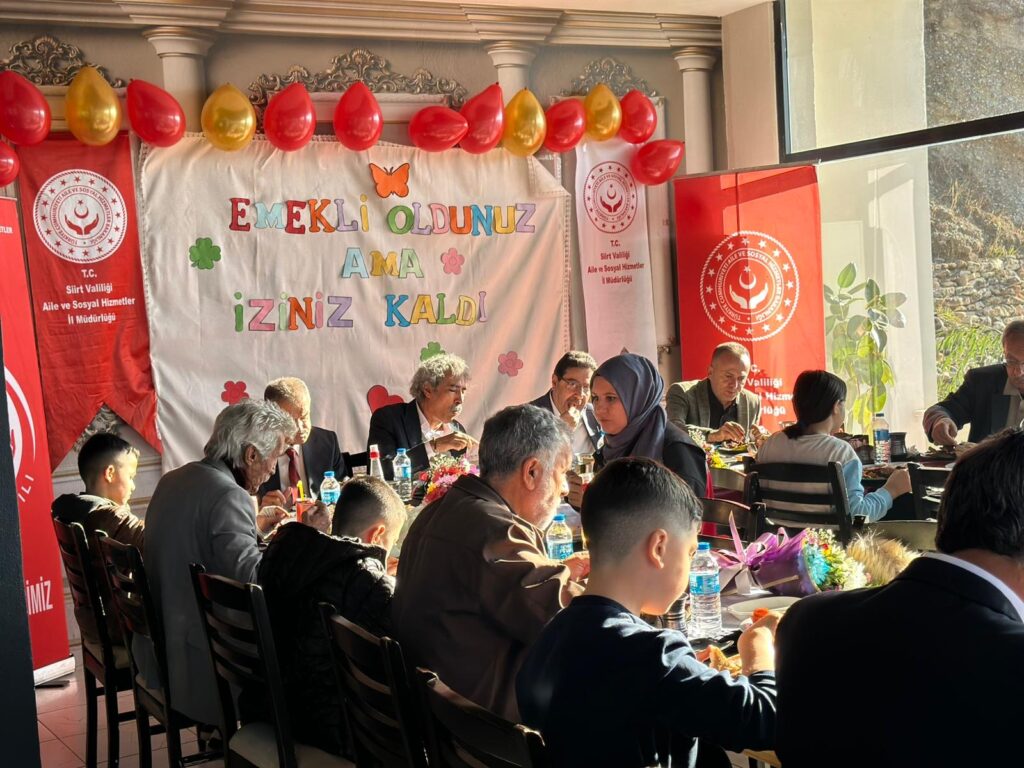 Siirt Aile ve Sosyal Hizmetler İl Müdürlüğü 24 Kasım öğretmenler günü nedeniyle emekli öğretmenlere bir jest yaptı. Bir yemekte emekli öğretmenleri öğrencileri ile buluşturarak sohbet erme imkanı  sağladı.