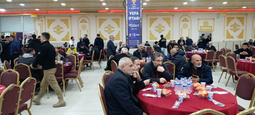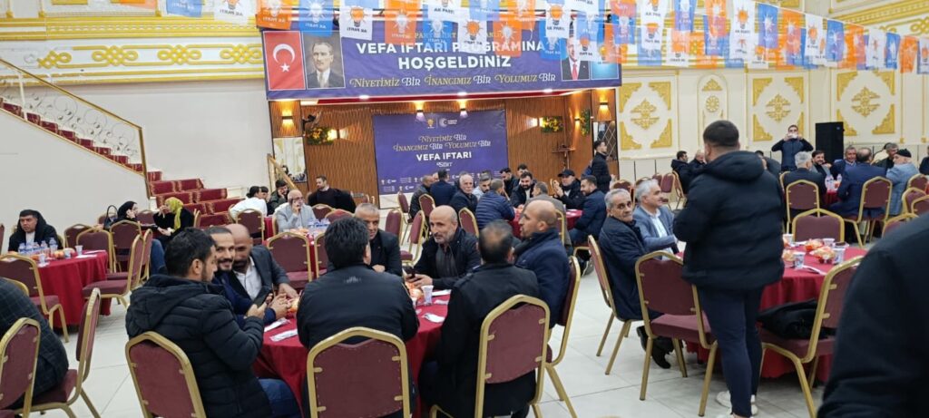 Ak Parti il Başkanlığı tarafından bir vefa iftarı verildi. Bir düğün salonunda verilen vefa iftar yemeğine partinin kuruluşundan bugüne kadar yönetimde görev alan eski il baskanları yönetim kurulu üyeleri ile ilçe ve belde belediye başkanları, il genel meclis üyeleri ve milletvekili Mervan Gül ile kalabalık topluluk katıldı.