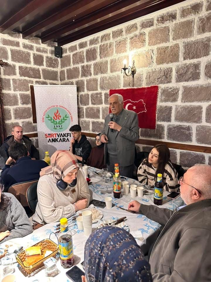 Ankara’da çeşitli üniversitelerde öğrenim gören Siirtli öğrenciler, Ramazan ayı dolayısıyla düzenlenen akşam yemeğinde bir araya geldi. Öğrenciler, Siirt Eğitim Kültür ve Yardımlaşma Vakfı Ankara Şubesi yönetim kurulu üyeleri tarafından vakfın hizmet binasında ağırlandı.