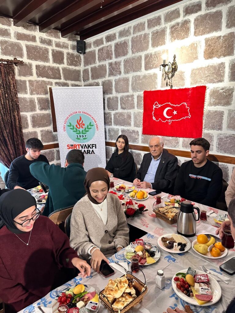 Ankara Siirt vakfı Başkanı Sayın Afif Demirkran ve yönetim kurulu üyeleri Ankara Hamamönün’de bulunan vakıf binasında kahvaltılı sohbette bir araya geldi.Sıcak bir ortamda gerçekleşen buluşma vakıf tarafından burs verilen elli altı ögrencide hazır bulundu. Başkan Demirkıran ögrencilere hitaben yaptığı konuşmada şunları söyledi;