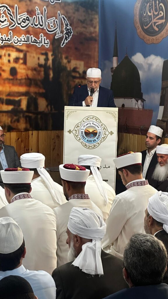 Basret Kur’an Kursu’nda gerçekleştirilen program, Kur’an-ı Kerim tilavetiyle başladı. Ardından öğrenciler tarafından seslendirilen ilahi, kaside ve salavatlar, salonda manevi bir atmosfer oluşturdu.