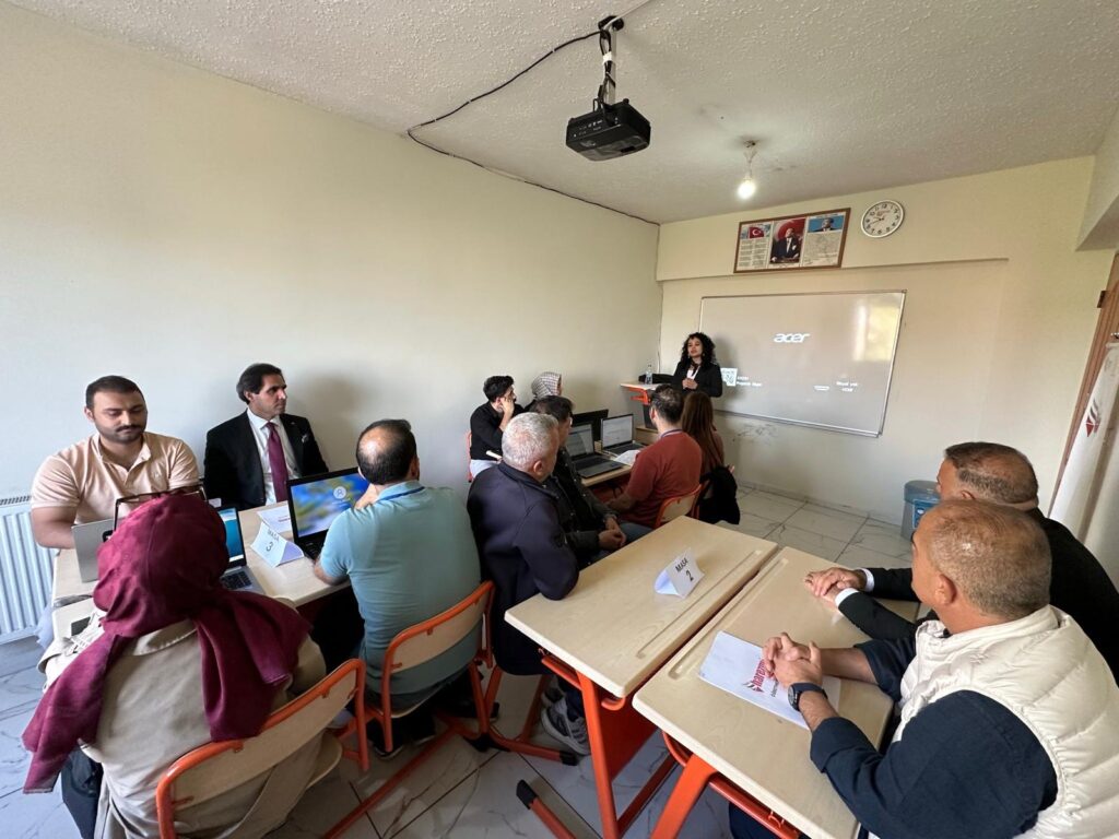 Eğitime katılan öğretmenlerle sohbet eden İl Müdürü Saz, modelin öğrenci merkezli ve proje tabanlı yapısının geleceğin öğrenme ortamlarını şekillendireceğini vurguladı.