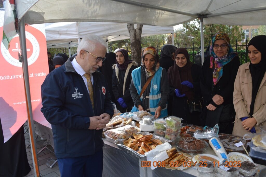 Vatandaşlardan yoğun ilgi gören hayır çarşısı,  Güres Caddesi Sancaklar Okulu karşısında ziyarete açıldı. Ev yapımı ürünler ve yöresel tatlar satışta TDV Siirt Şubesi gönüllüleri ile hayırsever vatandaşların katkılarıyla hazırlanan hayır çarşısında ev yapımı yiyecekler, el emeği ürünler, hediyelik eşyalar ve çeşitli yöresel tatlar satışa sunuldu. Kermesten elde edilecek gelirin tamamı Türkiye Diyanet Vakfı aracılığıyla Gazze’deki yaralı, yoksul ve mağdur ailelere ulaştırılacak.