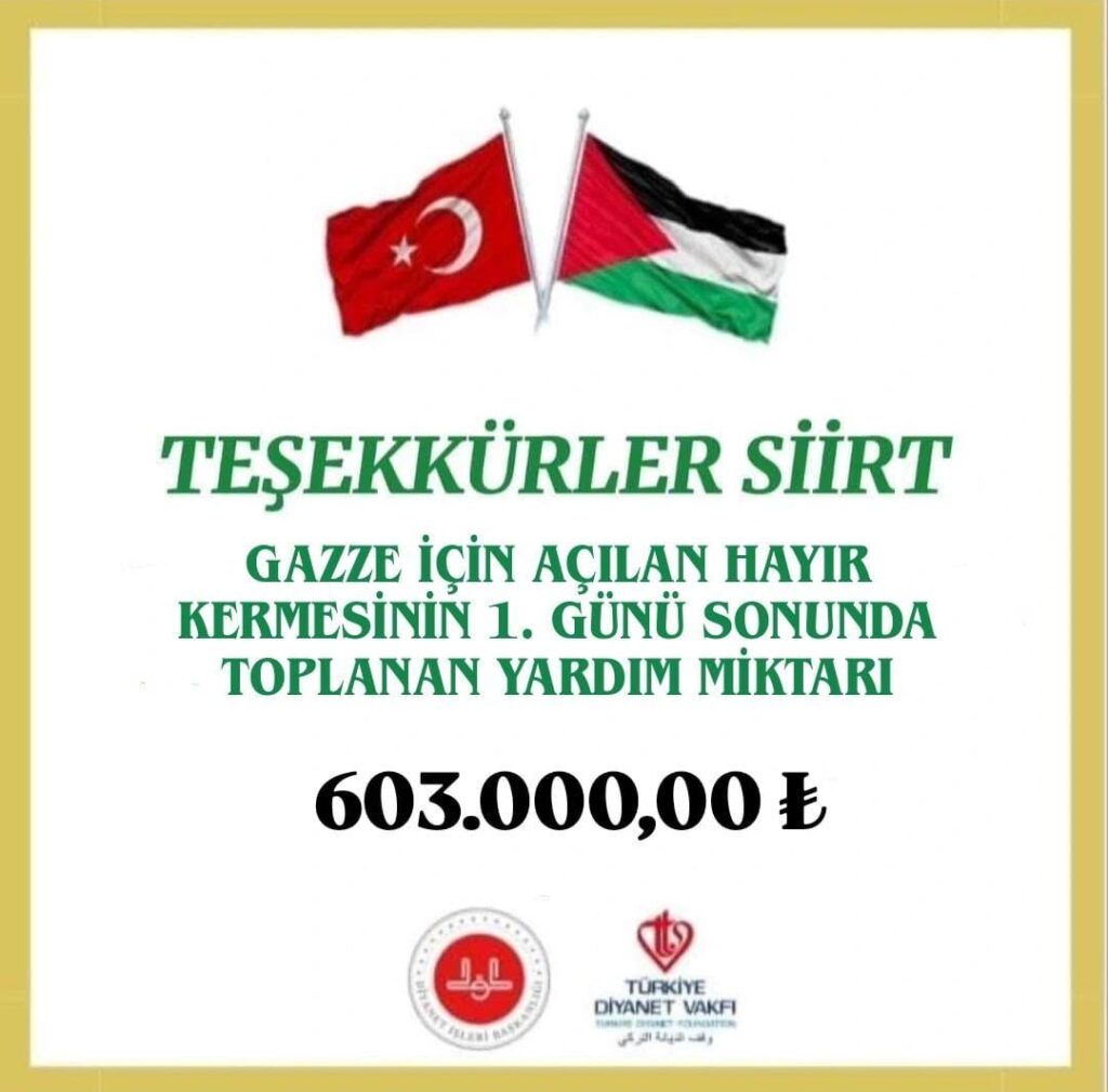 Siirt İl Müftülüğü ile Türkiye Diyanet Vakfı (TDV) Siirt Şubesi tarafından Gazze’deki mazlumlara destek amacıyla düzenlenen Hayır Çarşısı, Siirt halkının yoğun ilgisiyle başladı.