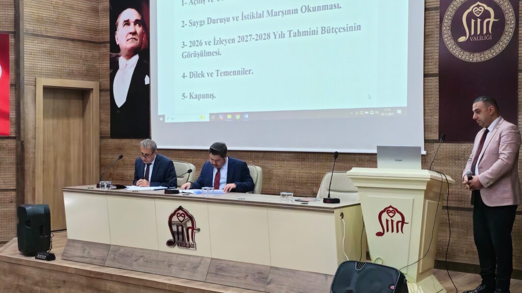 Siirt Valiliği Köylere Hizmet Götürme Birliği Başkanlığı 2026 bütçesi mecliste oylanarak kabul edildi. Vali Yardımcısı Yunus Emre Bozkurtoğlu başkanlığında toplanan birlik meclisi hazırlanan bütçeyi görüştü ve onayladı.