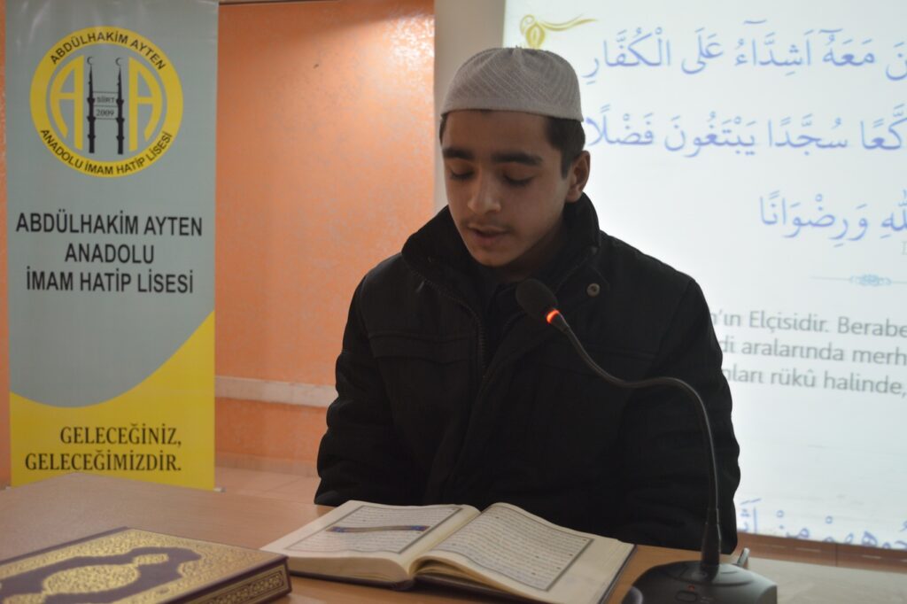 Siirt’te Abdulhakim Ayten Anadolu İmam Hatip Lisesi ev sahipliğinde, Millî Eğitim Bakanlığı Din Öğretimi Genel Müdürlüğü tarafından her yıl düzenlenen Genç Sada Kur’an-ı Kerim’i Güzel Okuma ve Hafızlık Yarışmaları kapsamında anlamlı bir program gerçekleştirildi. Öğrencilerin Kur’an-ı Kerim’e olan bağlılığını pekiştirmeyi ve yeteneklerini ortaya koymayı amaçlayan etkinlik, yoğun ilgi gördü.