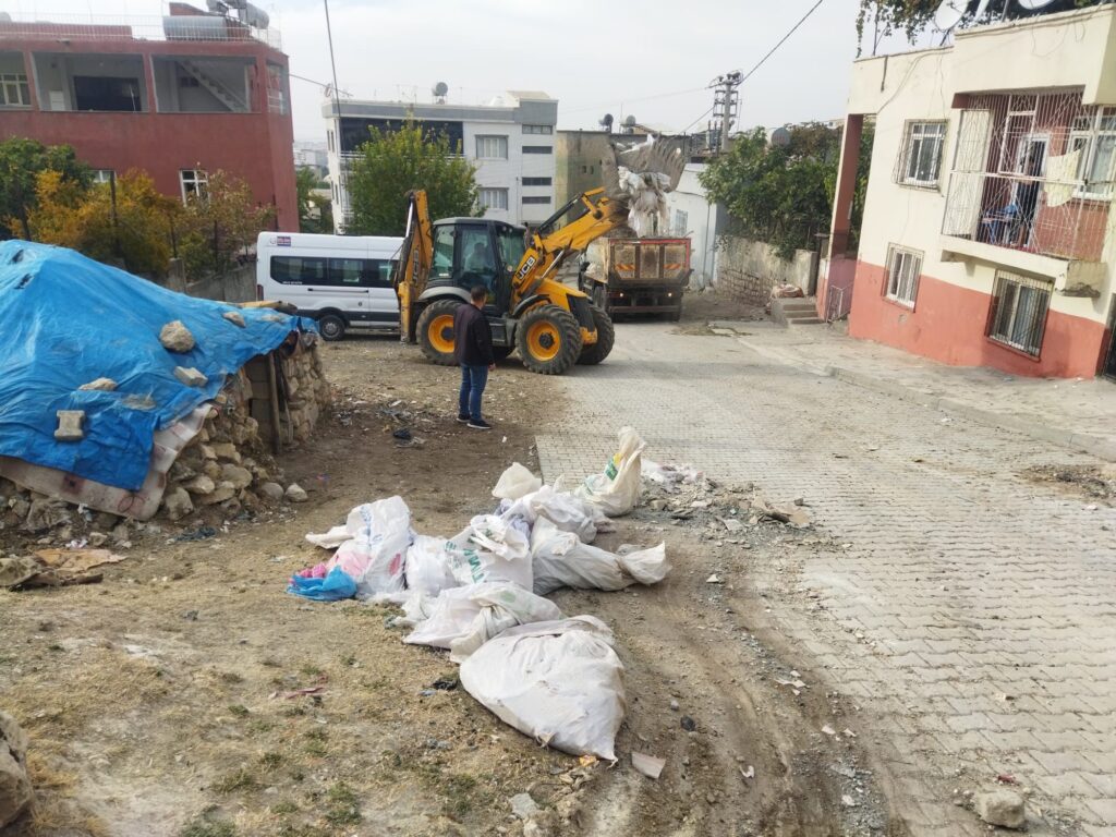 Ekipler, belirlenen çöp alanları dışında gelişi güzel şekilde bırakılan moloz, evsel atık, çöp yığınları ve inşaat enkazlarını kepçelerle toplayarak, çevre ve görüntü kirliliğini ortadan kaldırıyor.