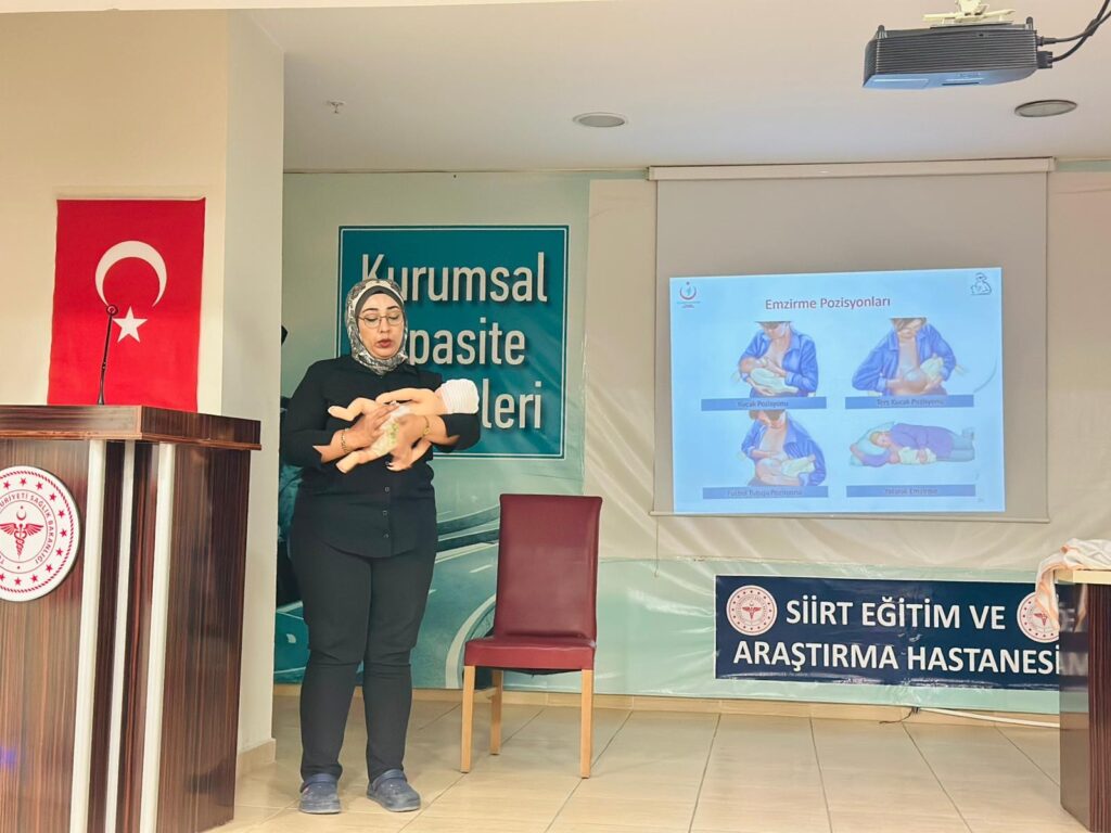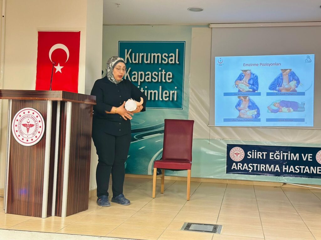 Siirt Eğitim ve Araştırma Hastanesi’nde, anne sütüyle beslenmenin önemi konusunda farkındalık oluşturmak ve sağlık çalışanlarının bilgi düzeyini artırmak amacıyla “Anne Sütü ile Beslenme ve Emzirme” konulu eğitim programı düzenlendi.