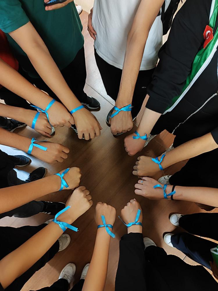Siirt Gazi Anadolu Lisesi’nde, Gazze halkına yönelik İsrail devletinin insanları katletmesini ele alan “Mavi Kurdele”adında farkındalık etkinliği düzenlendi. Yapılan bu etkinlikte, Filistin’deki bu barbar katliamlar ve Gazze’nin haklı davası konuşuldu ve sergilendi.