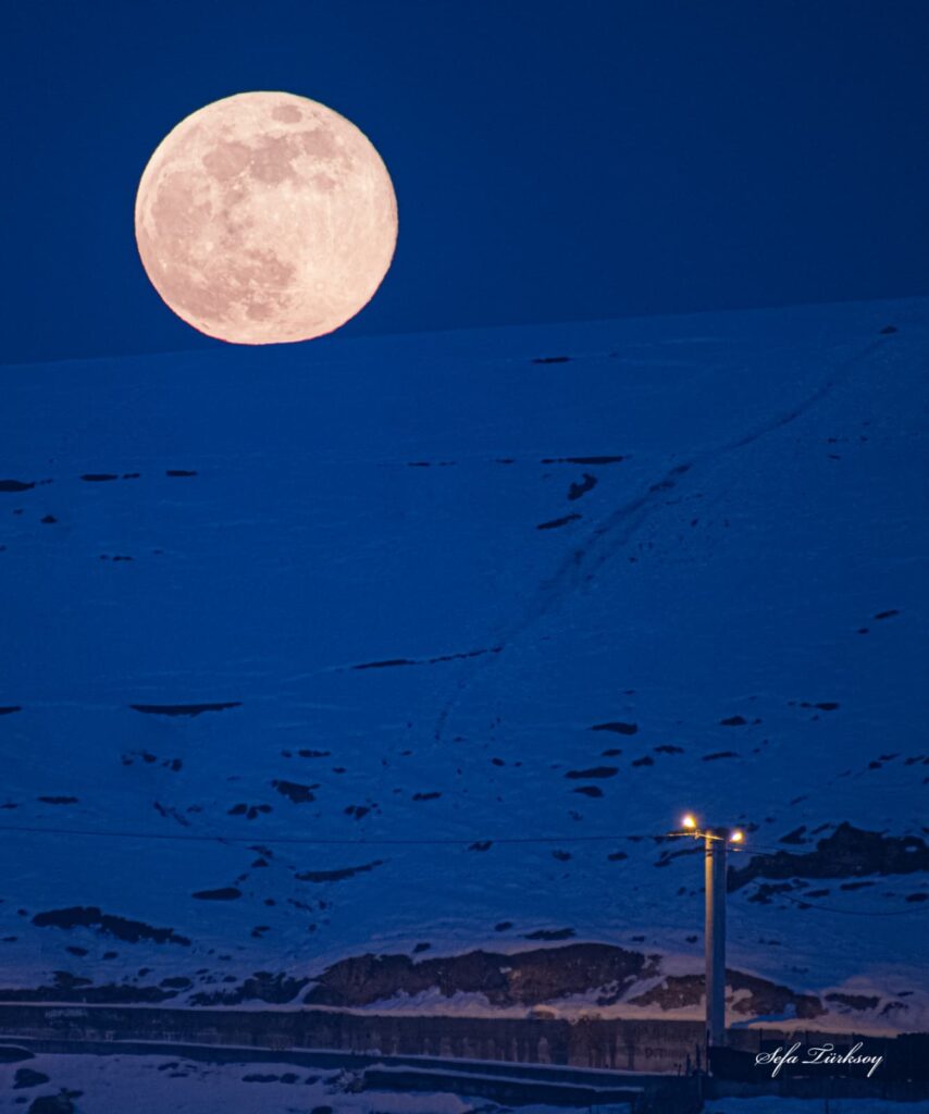 Kış aylarının en parlak gökyüzü olaylarından biri kabul edilen Ocak ayı dolunayı, dün akşam saatlerinde Siirt’in doğu ufkunda belirdi. Havanın açık ve görüş mesafesinin net olmasını fırsat bilen Fotoğraf Sanatçısı Sefa Türksoy, bu eşsiz anı kaydetmek için deklanşöre bastı.