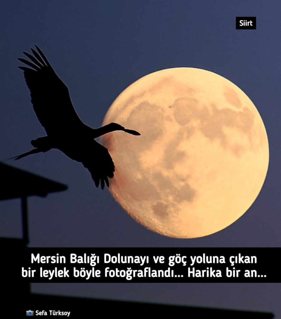 Siirt, her yıl pek çok kuş türünün göç yolculuklarında geçiş yaptığı önemli bir rota olarak dikkat çekiyor. Bu özel dönemde, Afrika’ya göç eden leyleklerin zorlu yolculuklarının başladığı yerlerden biri olan Siirt, doğal güzellikleri ve biyolojik çeşitliliğiyle de öne çıkıyor. Türksoy’un fotoğrafı, sadece bir leyleğin göçünü değil, aynı zamanda o gece gökyüzünde gözlemlenen dolunay ve parlak gezegenlerle birleşerek görsel bir şölen oluşturdu.