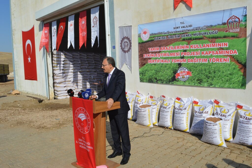 Vali Kızılkaya, “Bugün burada, ilimiz tarımının geleceği açısından büyük bir adım olan ‘Kırmızı Mercimek Üretimini Geliştirme Projesi’nin tohum dağıtım töreninde sizlerle bir arada olmaktan büyük bir memnuniyet duyuyorum. Bu proje sadece üreticimize sağlanan bir destek değil; aynı zamanda ülkemizin gıda güvenliğine, kırsal kalkınmaya ve sürdürülebilir tarım vizyonuna güçlü bir katkıdır. proje kapsamında Merkez, Kurtalan, Baykan ve Eruh ilçelerinde toplam 15 bin dekar alanda üretim yapılacağını, 203 ton sertifikalı tohumun çiftçilere dağıtıldığını belirterek şu bilgileri paylaştı: “Toplam 13 milyon 333 bin 333 lira tutarındaki bu projenin yüzde 75’i Bakanlığımız hibesiyle, yüzde 25’i ise çiftçi katkısıyla hayata geçirilecektir. Bu tablo, devletimizin üreticisinin yanında olduğunu, tarımı stratejik bir sektör olarak gördüğünü bir kez daha göstermektedir.” dedi.