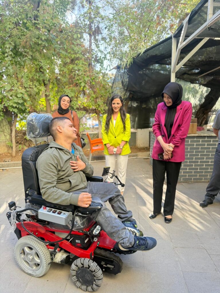 Siirt’te AK Parti İl Kadın Kolları’nın girişimleriyle 27 yaşındaki bedensel engelli Hakim Kaya’ya merdiven çıkabilen tam donanımlı tekerlekli sandalye desteği sağlandı.