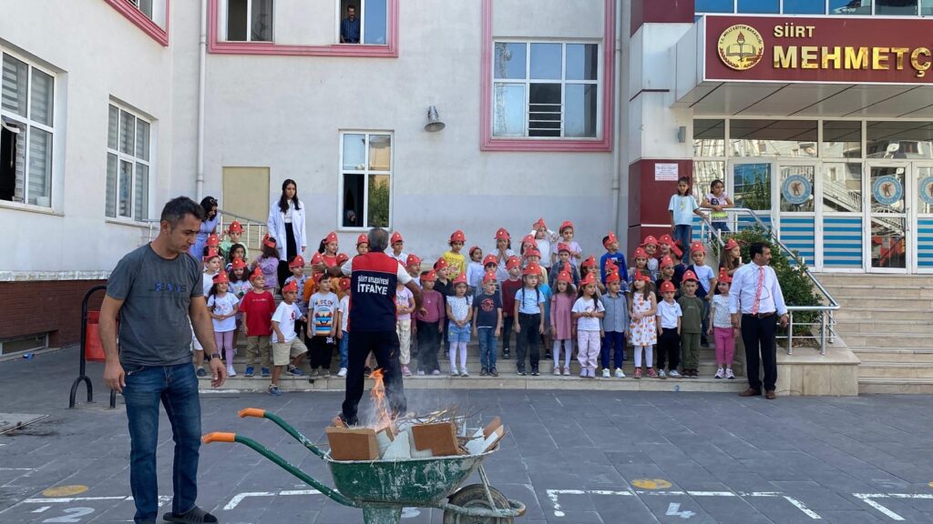 Siirt Belediyesi İtfaiye Müdürlüğü personeli, İtfaiye Haftası kapsamında Mehmetçik İlkokulu’nda öğrencilere eğitim verdi. Etkinlik, öğrencilerin sürpriz kutlamasıyla renkli bir şekilde tamamlandı.