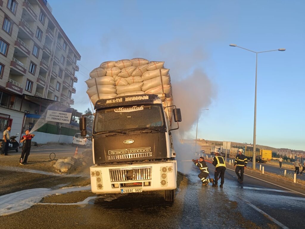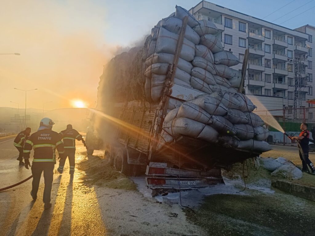 Siirt’te Saman Yüklü Kamyonda Yangın: 14 Ton Zarar