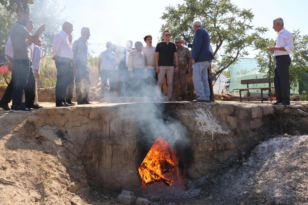 Bölgemizin yöresel lezzetlerinden üzüm pekmezinin kazanlarda kaynatılma işlemini de yakından takip eden Kaymakam Serin, pekmez yapım aşamasına katılarak çiftçilerimizden detaylı bilgi aldı.