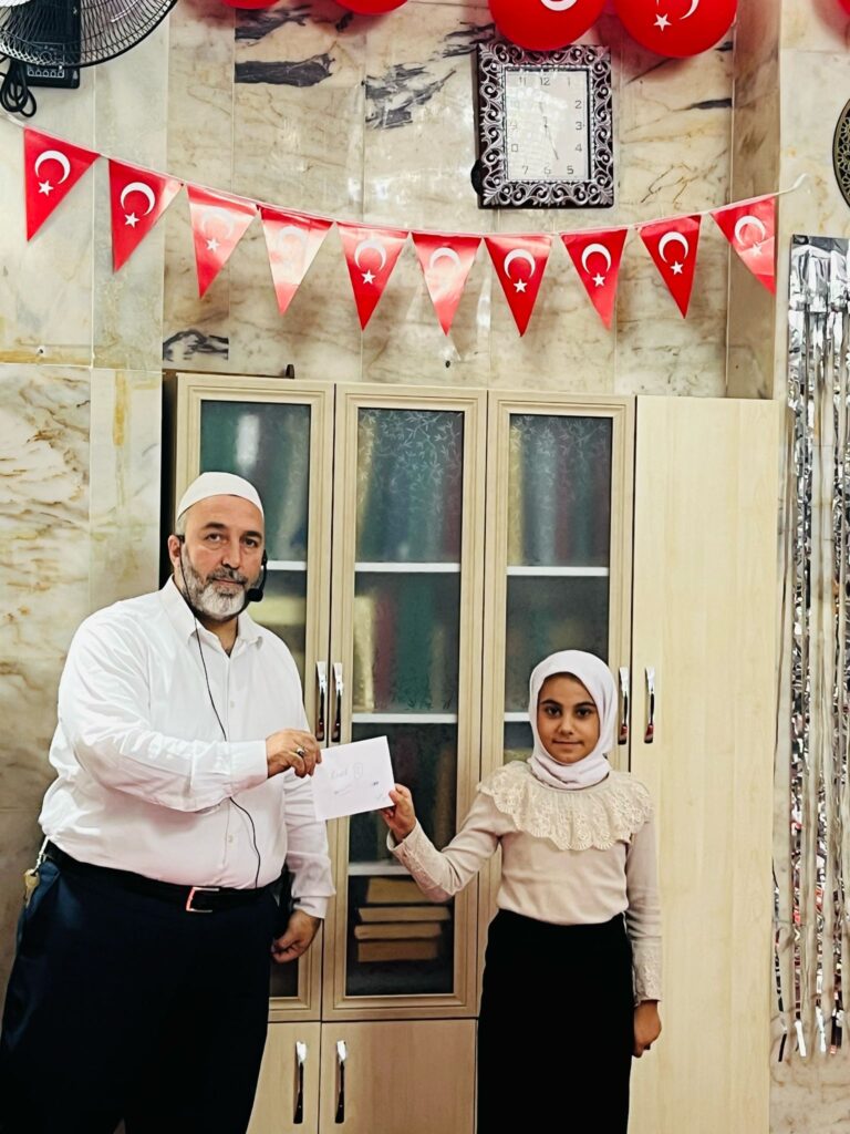 Toprak, iki ay süren kursa 450 öğrencinin katıldığını belirterek, “Öğrencilerimize Kur’an-ı Kerim ve temel dini bilgiler öğrettik. Bugün ise ödül töreni ile kursumuzu tamamlıyoruz.” dedi.