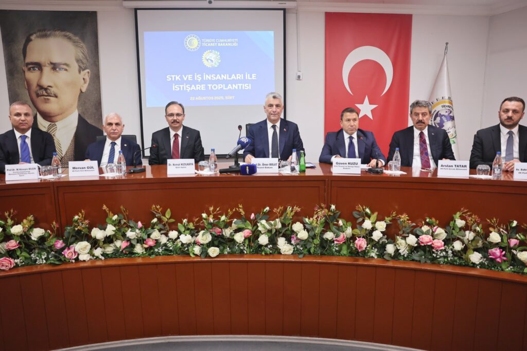 Ticaret Bakanı Ömer Bolat, Siirt programı kapsamında sivil toplum kuruluşları ve iş dünyası temsilcileriyle Siirt Ticaret ve Sanayi Odasında düzenlenen İstişare Toplantısı”nda bir araya geldi. Tarih boyunca ticaret yollarının kesişim noktasında yer alan Siirt’in, kültürlerin ve medeniyetlerin buluşma noktası olduğuna dikkat çeken Bakan Bolat, kentin ekonomik potansiyeline yönelik önemli mesajlar verdi.