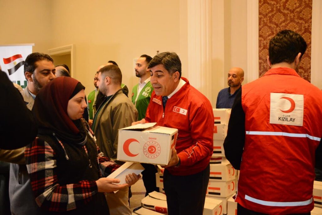 Kahire / Mısır – Türk Kızılay Yönetim Kurulu Üyesi Yener Tanık, üç kişilik bir heyetle birlikte Mısır Kızılayı iş birliğinde ve Türkiye Cumhuriyeti Kahire Büyükelçisi Salih Mutlu Şen’in katılımlarıyla , Mısır’da misafir edilen Gazzeli 550 kişiyle iftar programında bir araya geldi.